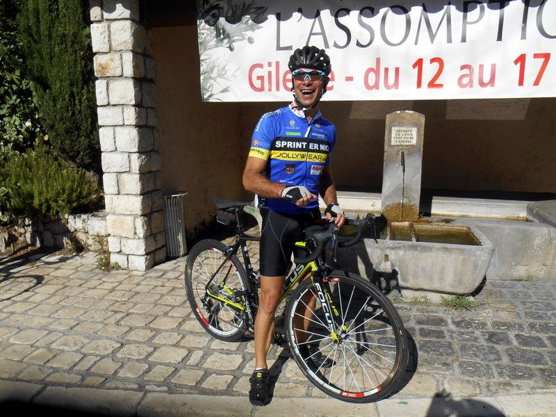 Arrivé au pied de la c^te de Gilette,à la fontaine que les cyclistes connaissent bien,là,c'est Eric que je vois remplir sa gourde.Il me dit qu'il a été au pointage et qu'il a croisé le groupe en descendant.???"Je suis parti de Carros!".Je comprend mieux.ême si nous savons qu'il marche comme un avion,cela me semble impossible d'avoir fait un tel écart avec les autres qui ne laissent pas leurs parts au chat...Je demande des nouvelles du groupe.Il me dit qu'il les a croisé presque à Revest.Il va me falloir ouvrir les gaz pour les rattraper avant Tourette.